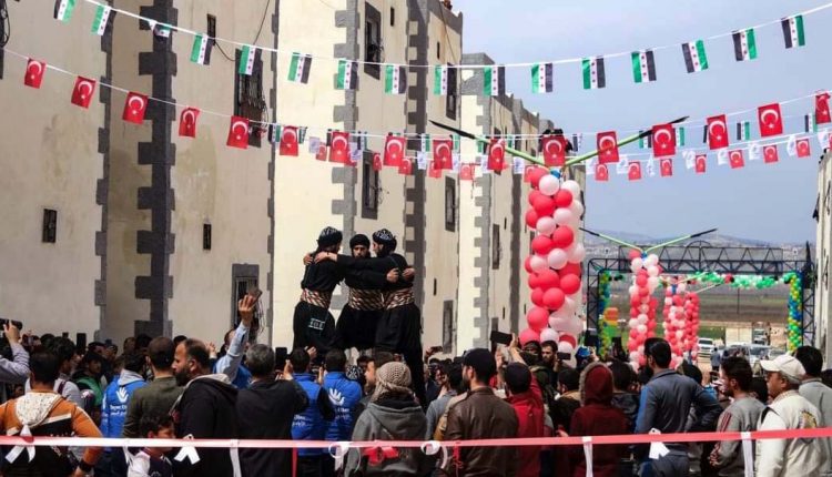 وهذا نموذج لبناء المستوطنات في منطقة عفرين، التي يقوم بها المحتل التركي ومرتزقته.