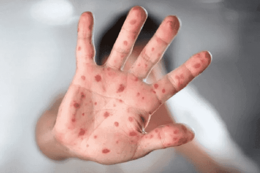 وأضافت: (قبل ظهور الطفح الجلدي، قد يعاني المريض من ارتفاع في درجة الحرارة وآلام وفقدان الشهية).
