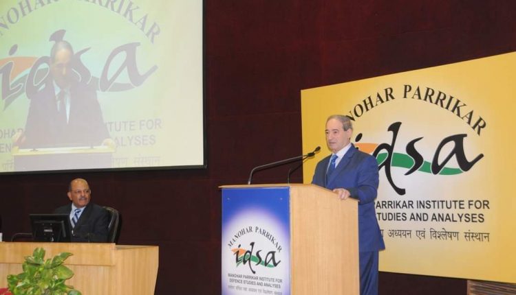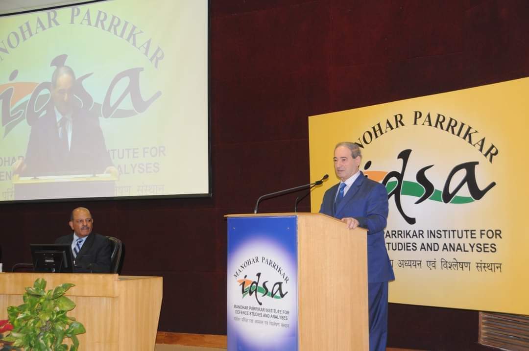 في إطار الزيارة التي يقوم بها إلى العاصمة الهندية نيودلهي، أجرى الدكتور فيصل المقداد، وزير الخارجية والمغتربين، جلسة حوارية مع الباحثين في معهد (مانوهار باريكار) للدراسات الدفاعية والتحليل (idsa) بحضور واسع لخبراء عسكريين وسياسيين وأكاديميين وشخصيات دبلوماسية والوفد المرافق له.