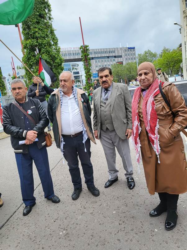 بمناسبة الذكرى الـ٧٥ للنكبة، وتضامناً مع الشعب الفلسطيني، وتصدّيه للعدوان الصهيوني على غزة، وتخليداً لشهداء ثأر الأحرار ولعموم مقاومي الشعب الفلسطيني ودعماً لأسرى الحرية، احتشد يوم السبت ١٣ أيار في فيينا عدد من أبناء الجالية الفلسطينية والعربية والإسلامية، وذلك بمبادرة من لجان المقاطعة BDS وجمعية الصداقة النمساوية الفلسطينية، بمشاركة ممثلي قوى العمل الوطني الفلسطيني وممثلين للحزبين الشيوعي السوري الموحد والشيوعي العراقي.