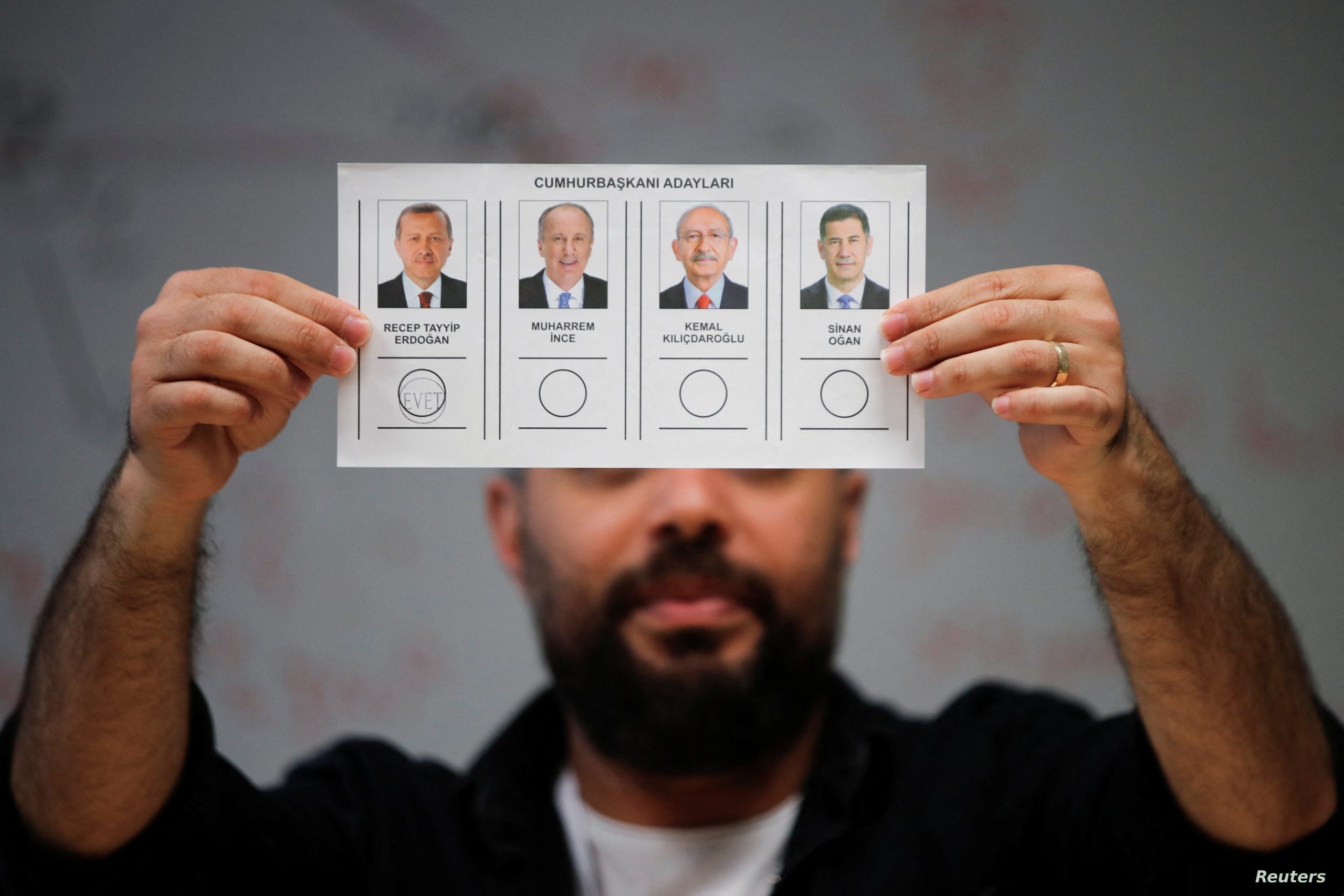 ولم يتمكن من تحقيق النسبة المطلوبة للفوز أيٌّ من المرشحين الأربعة وهم: رجب طيب أردوغان، كمال كيليتشدار أوغلو، سنان أوغان، محرم إنجه الذي سحب ترشيحه، وإذ يتقدم أردوغان على منافسيه، لكنه لم يتجاوز 50%، وهي نسبة الأصوات التي يحتاجها ليفوز بولاية رئاسية جديدة لمدة 5 سنوات.