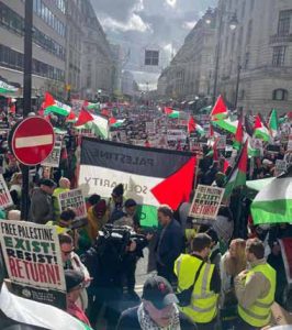 ولقد ركزت الشعارات المكتوبة والهتافات في تلك التظاهرة على الوقف الفوري للعدوان على غزة، وإدانة الجرائم الصهيونية وعمليات الإبادة والقصف واتباع سياسة الأرض المحروقة، التي طالت البيوت والمستشفيات والأطفال والنساء والطواقم الطبية، كما أدانت الشعارات المواقف الدولية الصامتة عن جرائم الاحتلال، وطالب المحتشدون بالحماية الدولية للشعب الفلسطيني ورفض كل محاولات التهجير الذي يهدف له المخطط الأمريكي الصهيوني من وراء هذا العدوان المجرم.