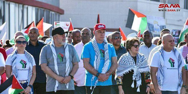 رئيس كوبا يتقدم مسيرة تضامنية حاشدة مع فلسطين في العاصمة هافانا